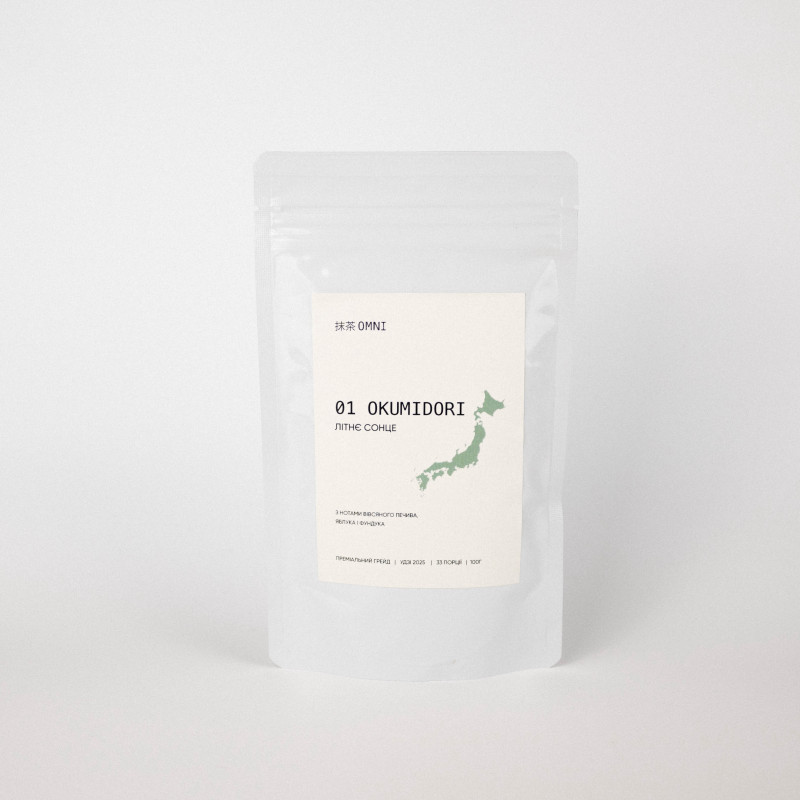 Кулінарний преміум, листя якого вирощений на зелених пагорбах Ізумо, поєднує перший і третій збори листя сорту Okumidori. Подрібнений в камʼяних млинах, має шовковисту текстуру та приємно виражену гірчинку, яка найкраще розкривається у випічці чи лате.